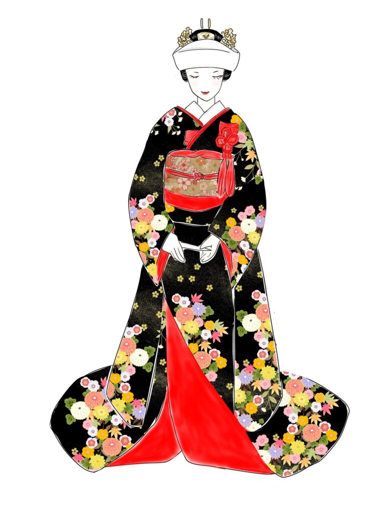 黒引き振袖には「新郎以外の誰の色にも染まらない」という意味合いがあります。